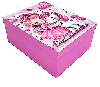 Подарочная коробка прямоугольная, "Девочка с единорожком", 35*27*15,5 см, 111025669