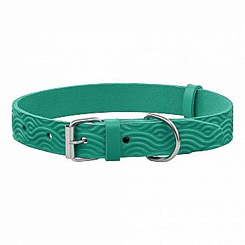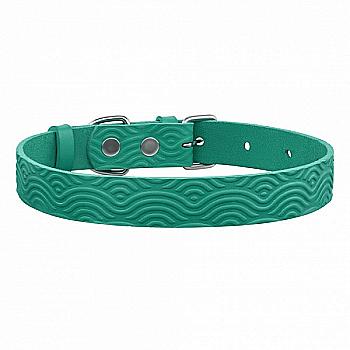 Ошейник для собак кожаный Barksi Classic одинарный с тиснением Волна(ш 12мм, д 23-30) бирюзовый