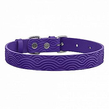 Ошейник для собак кожаный Barksi Classic одинарный с тиснением Волна(ш 17мм, д 28-36) фиолетовый