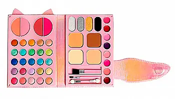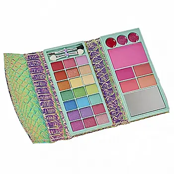 - Целые палитры из ярких теней. Обычно, такие наборы дополнены разнообразными румянами, блесками для губ, бронзаторами. Для удобства нанесения - есть аппликаторы. С ними красавица сможет легко нанести неповторимый мейк.