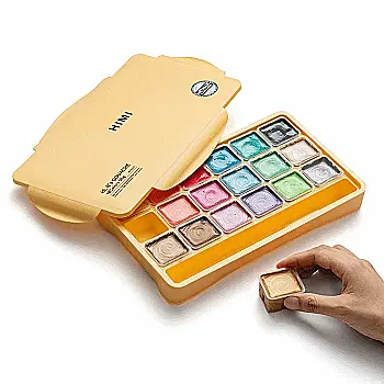 Набор гуашевых красок Jelly Cup 18*30 мл, Металлики, желтый пластик.пенал, HIMI