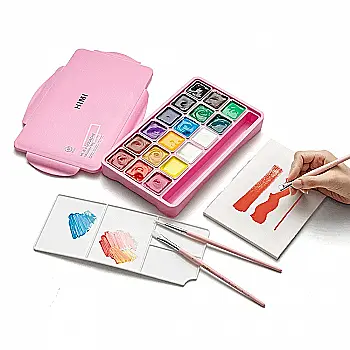 | Набор акварельных красок | Они содержат в своем составе: пигменты, связующие вещества, мед или глицерин. Пигмент для краски имеет очень высокую степень помола, что обеспечивает ее однородность. | Такой состав придает краске эффект прозрачности и легкости. Поэтому их часто используют для создания пейзажей, абстракций, школьных работ и др. |