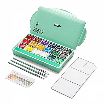 Набор гуашевых красок Jelly Cup 18*30 мл+3 кисти, зеленый пластик.пенал, HIMI