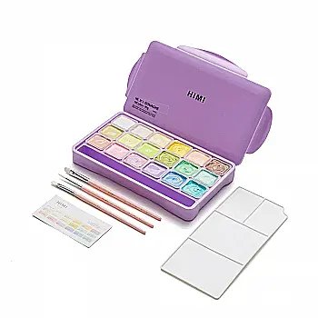 Набор гуашевых красок Jelly Cup 18*30 мл+3 кисти, Пастельные, фиолетовый пластик.пенал, HIMI