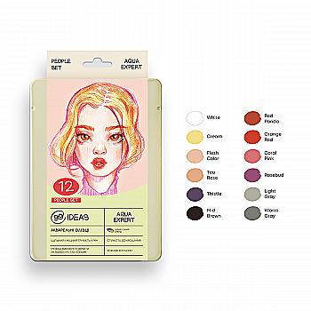 Набор карандашей акварельных 99IDEAS "Aqua Expert" 12 цв., People Set, метал. коробка, 99AE-12PEOP