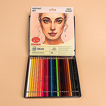 Набор карандашей акварельных 99IDEAS "Aqua Expert" 24 цв., Portrait Set, метал. коробка, 99AE-24PORT