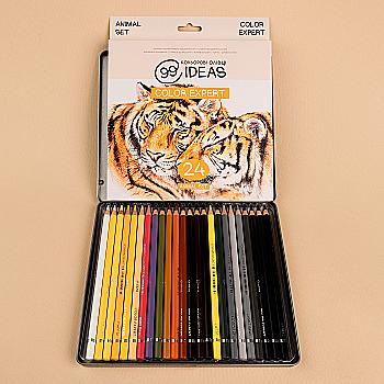 Набор цветных карандашей 99IDEAS "Color Expert" 24 цв., Animal Set, метал. коробка, 99CE-24ANIM