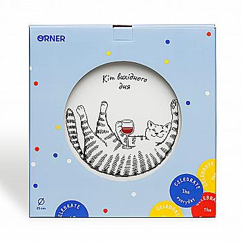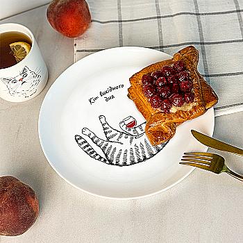 Тарелка "Коты кактус" 25 см стеклокерамика + подарочная коробка Kvarta, 1253