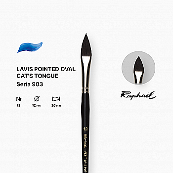 Кисть с заостренным овальным ворсом "Кошачий язык" Raphael, короткая черная лакированная ручка, №12, 903.12