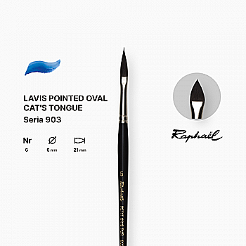 Кисть с заостренным овальным ворсом "Кошачий язык" Raphael, короткая черная лакированная ручка, №6, 903.6