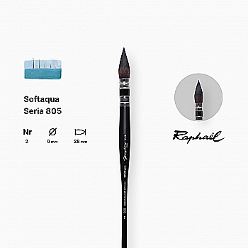 Кисть синтетика круглая (имитация белка) "Raphael" Softaqua, №2, французская вязка, профессиональный, 805.2