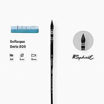 Кисть синтетика круглая (имитация белки) "Raphael" Softaqua, №3/0, французская вязкая, профессиональный, 805.3/0